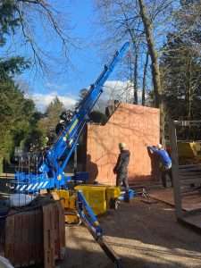Meer en meer is de elektrische minikraan, de Hoeflon C7-e op pad. Sinds kort ook op pad met zijn kleine broertje de elektrische Hoeflon transportcarrier TC1.
