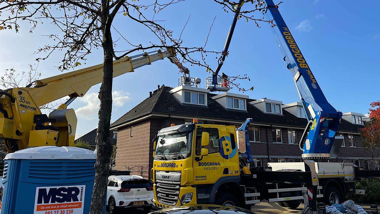 De ondersteuning is gegeven door het direct vrij maken van 3 vrachtwagen hoogwerkers met een bereik tot 48 meter, hiernaast is het mogelijk om de werkbak te roteren, Hierdoor kunnen de werkzaamheden veilig plaatsvinden.